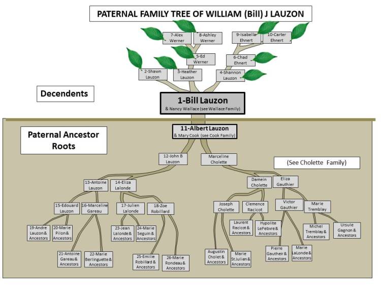 C. John Lauzon’s ancestors (see Cholette on main menu for Marceline’s ancestors)